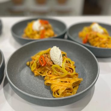 The Bella Tavola Experience blends the joy of hands-on pasta making with the refinement of a chef-crafted dinner. Guests come together to create fresh pasta from scratch, then gather around the table to savor a beautifully curated meal that celebrates the very art they’ve just mastered—an immersive, memorable journey from beginning to end.